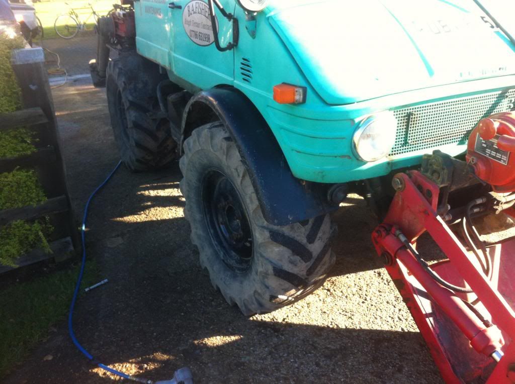 last weekend i put some heavier springs on the green mog, along with some stove enameled mud gaurds (we pinched these of the orange 1100 and took them to cas coatings in bradford, does a really good job there).