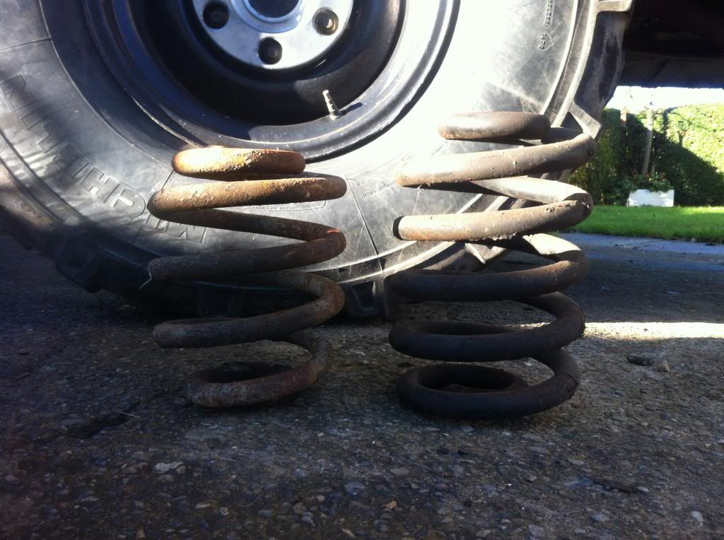 i dont know if you can see in this picture, but the drivers side is fitted with the new spring, it a lot higher.